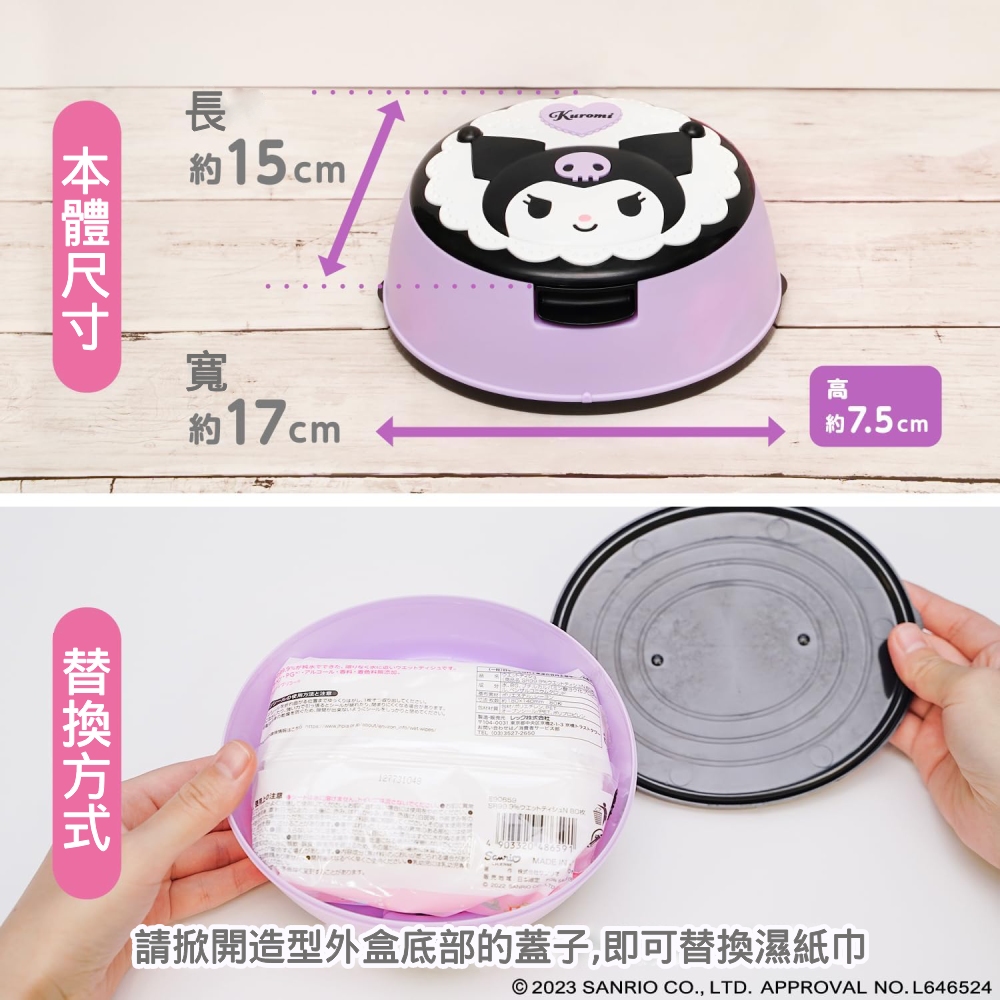• 內含一個濕紙巾外盒及一包三麗鷗系列純水濕紙巾(80抽)